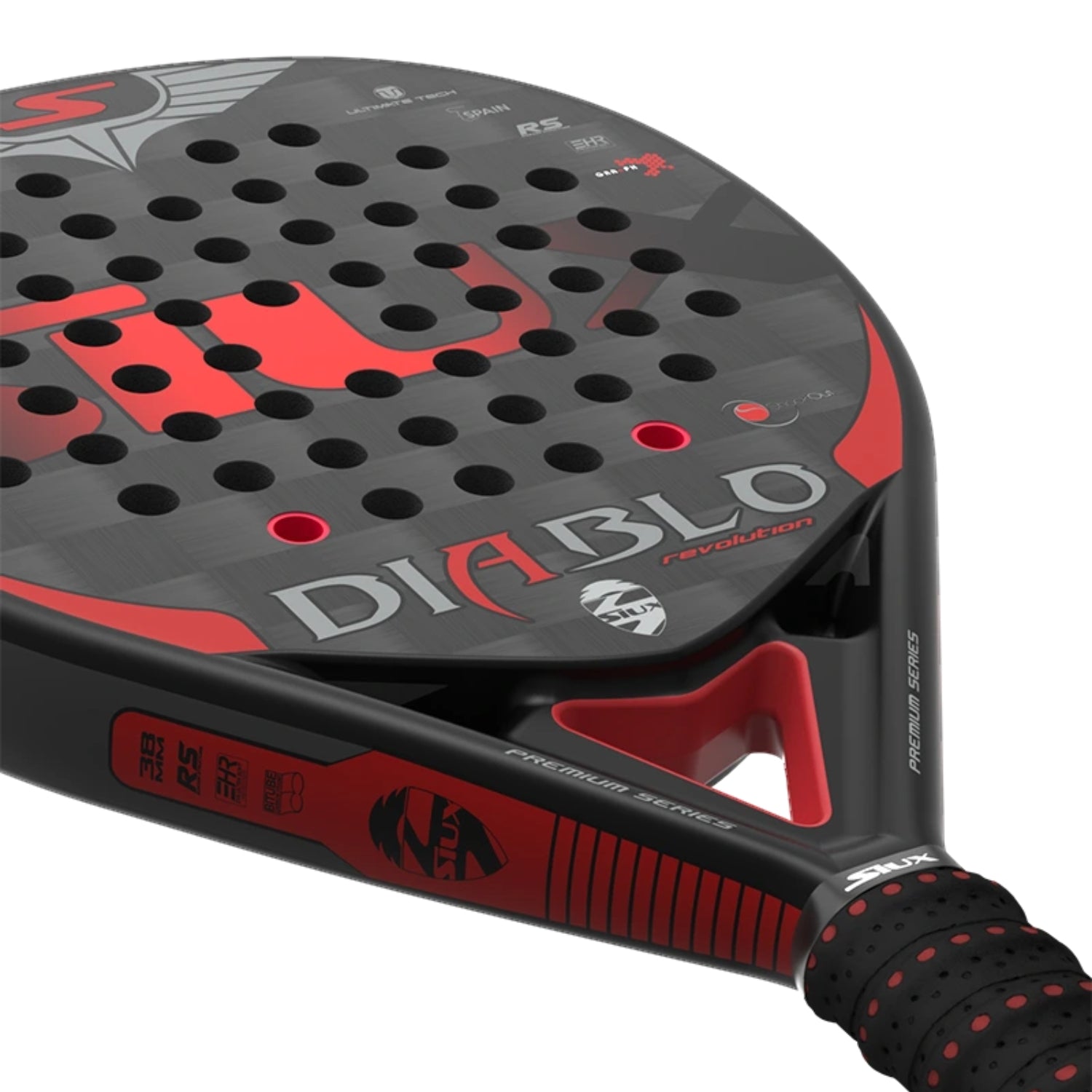 Este modelo es el de tacto más blando de las tres nuevas Diablo Revolution. Esto se debe al carbono 24K de sus planos, más elástico que el de fibra más estrecha. Así, ofrece más velocidad en la salida de bola que sus hermanas y también una mayor precisión en cada golpe. Aun así, cuenta con el mismo molde y balance, por lo que aporta una increíble potencia, la delicia de los más pegadores. Por la goma EVA Ultra Soft High Recovery de su núcleo, reduce considerablemente las vibraciones y las posibilidades de sufrir lesiones por ese motivo. Además, también incorpora el bitubular plano de carbono y los cuatro antivibradores Shockout.